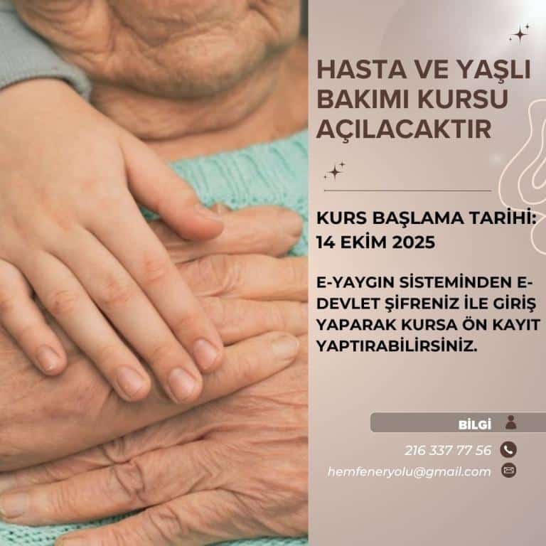 14 EKİM 2025 TARİHİNDE "HASTA VE YAŞLI BAKIMI" KURSU AÇILACAKTIR