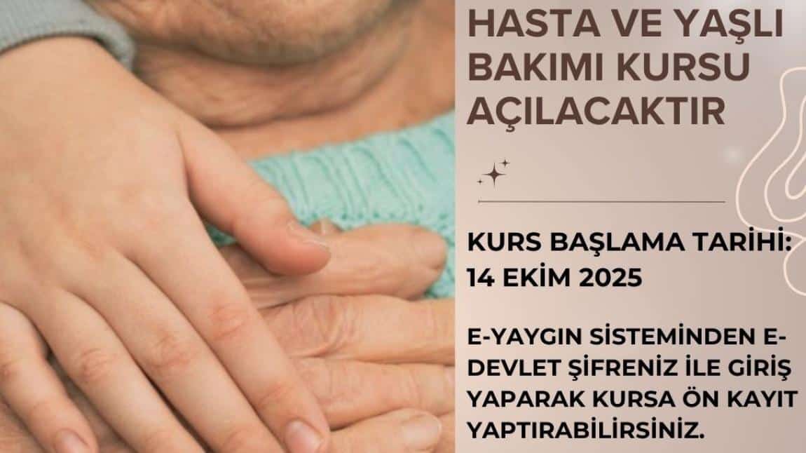 14 EKİM 2025 TARİHİNDE "HASTA VE YAŞLI BAKIMI" KURSU AÇILACAKTIR
